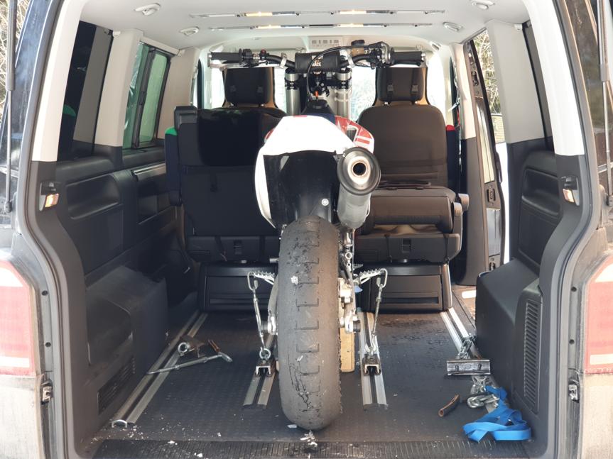 После смены длиннобазной версии фольксваген Т6 на стандартную, встал вопрос: А можно ли "засунуть" мой супермото Husquarna FS 450 в салон мультивена и оставить три пассажирских места?